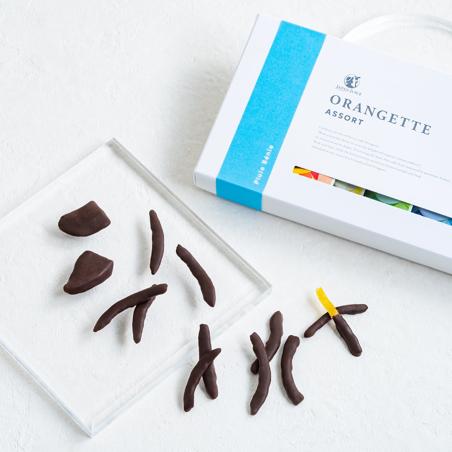 6種の国産柑橘をじっくり蜜漬けし、香りと果汁を閉じ込めたピールを、ダークチョコレートで丁寧に包みました。甘み、酸味、ほろ苦さ――それぞれの異なる風味が広がり、柑橘の個性が際立ちます。食べ進めるたび、新たな発見と出会えるオランジェットです。