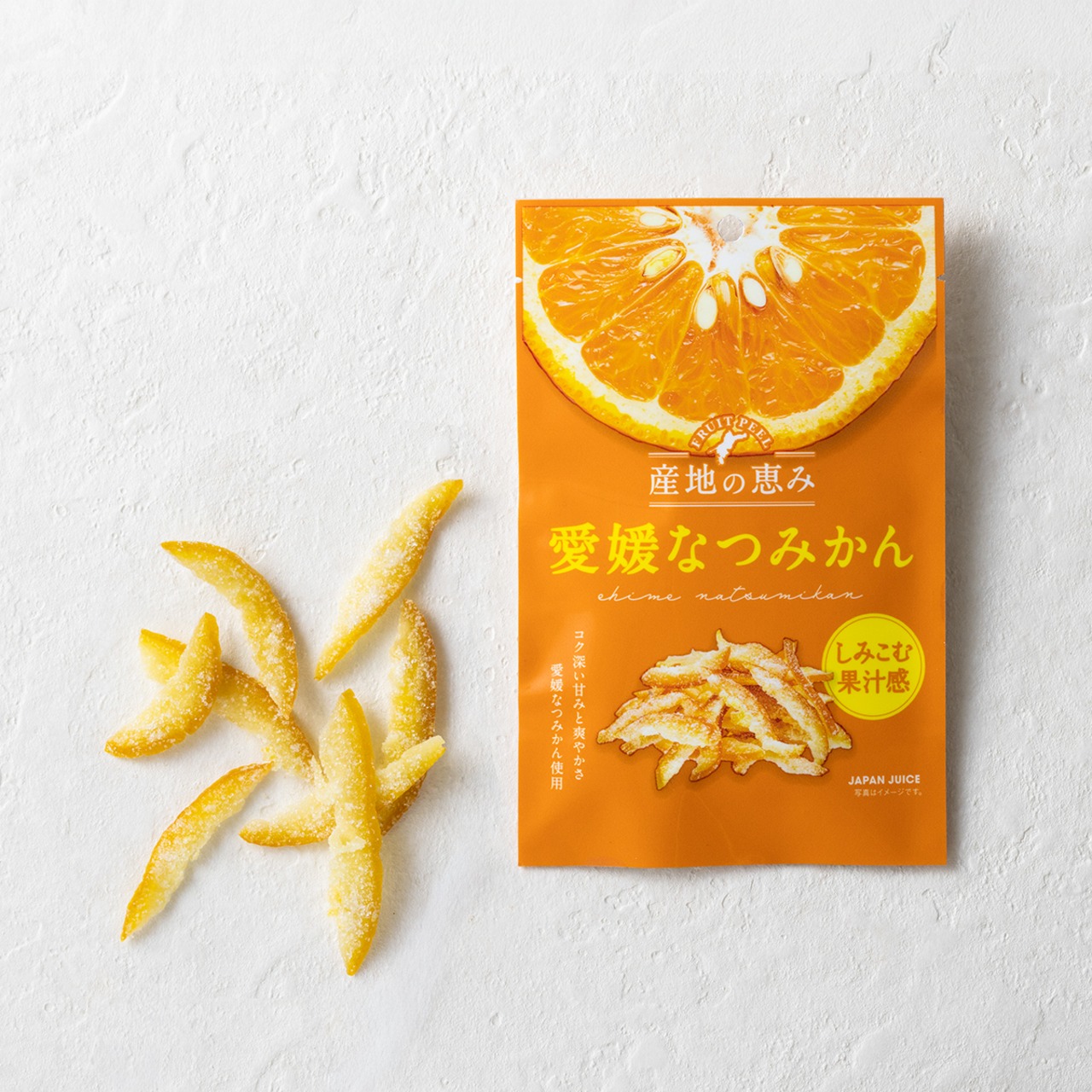 果実の皮にたっぷりの果汁を滲みこませて砂糖をまぶし、低温でじっくりと乾燥させました。