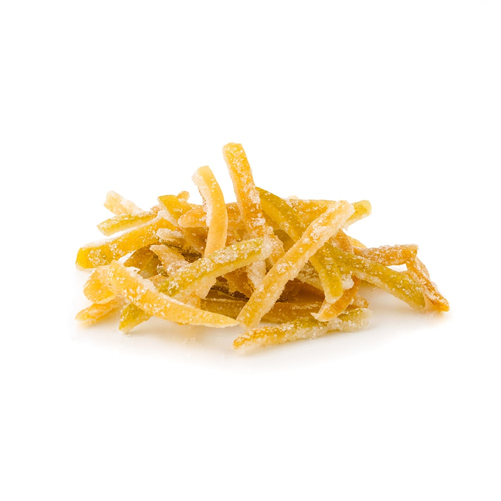 柑橘の皮にたっぷりの果汁を滲みこませて蜜漬けしたあと、じっくり乾燥させました。材料は皮と果汁と砂糖のみ。素材そのものの美味しさを楽しめる、酸味料・保存料無添加の優しいフルーツピールです。